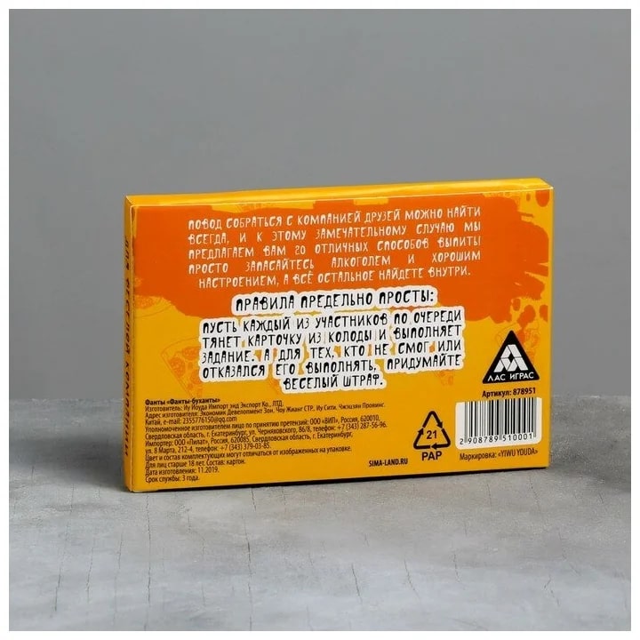 Купить игра для компании "фанты буханты" 20 карт от 100 руб. с доставкой до пункта выдачи в Малгобеке. Интернет магазин ДекаМаркет. Оплата при получении.